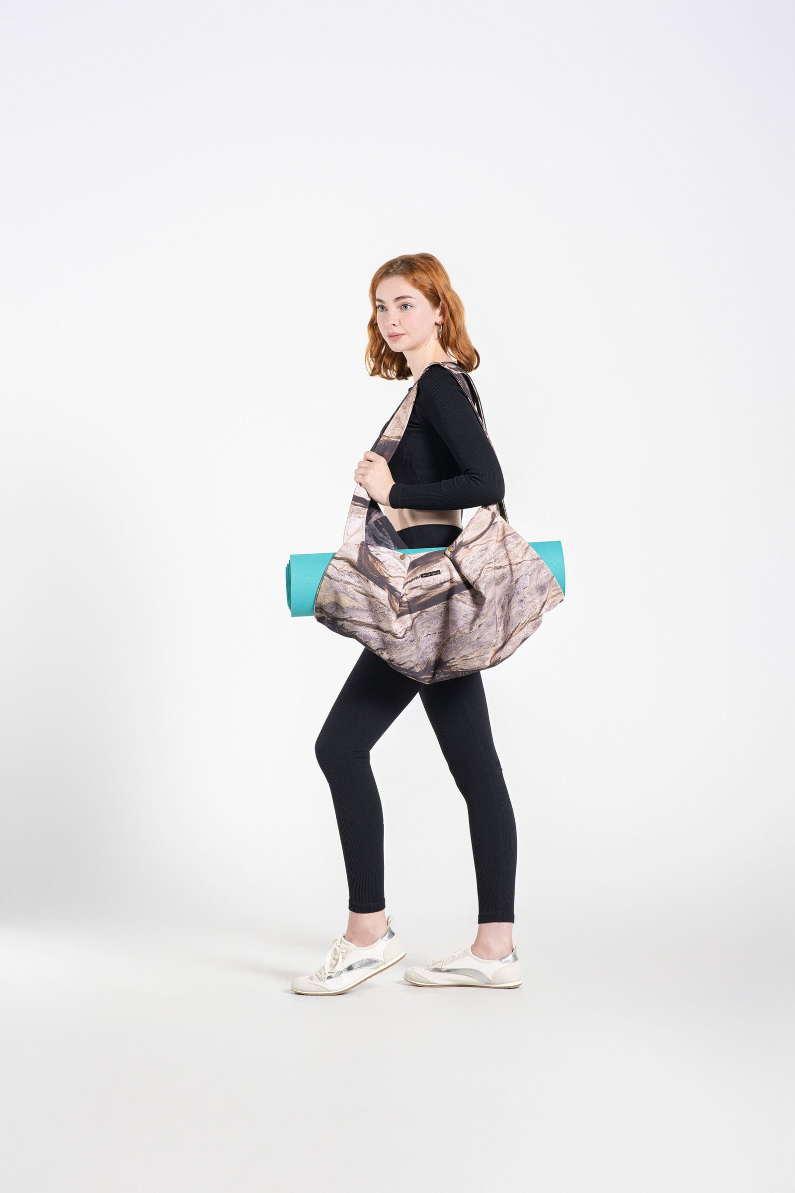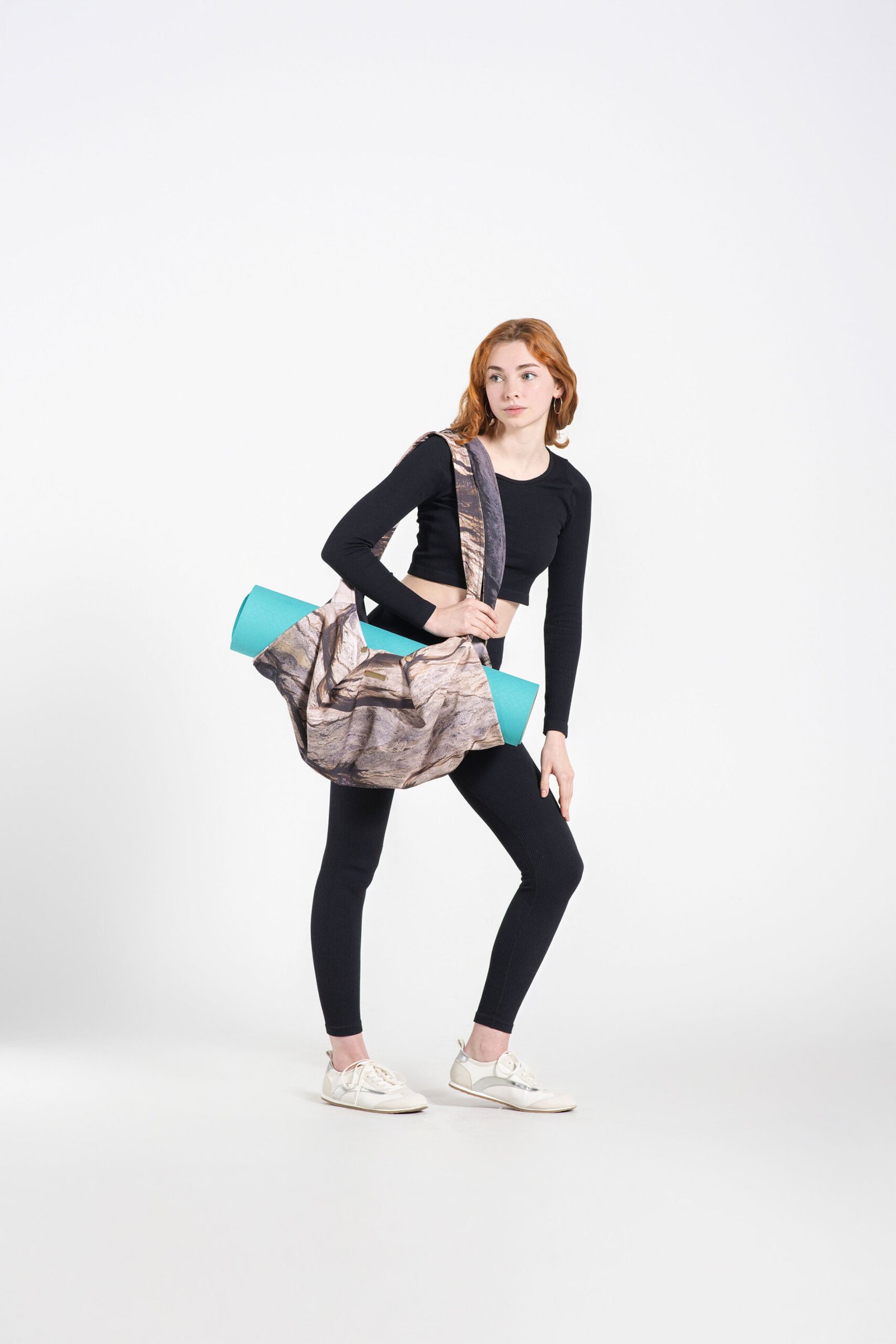 Poznaj naszą nowoczesną, poziomą torbę do jogi – wyjątkowy projekt łączący funkcjonalność z wyrafinowanym stylem. Wnętrze torby wyposażone jest w praktyczną kieszeń na zamek, dzięki której wszystkie akcesoria do treningu pozostają uporządkowane i łatwo dostępne.