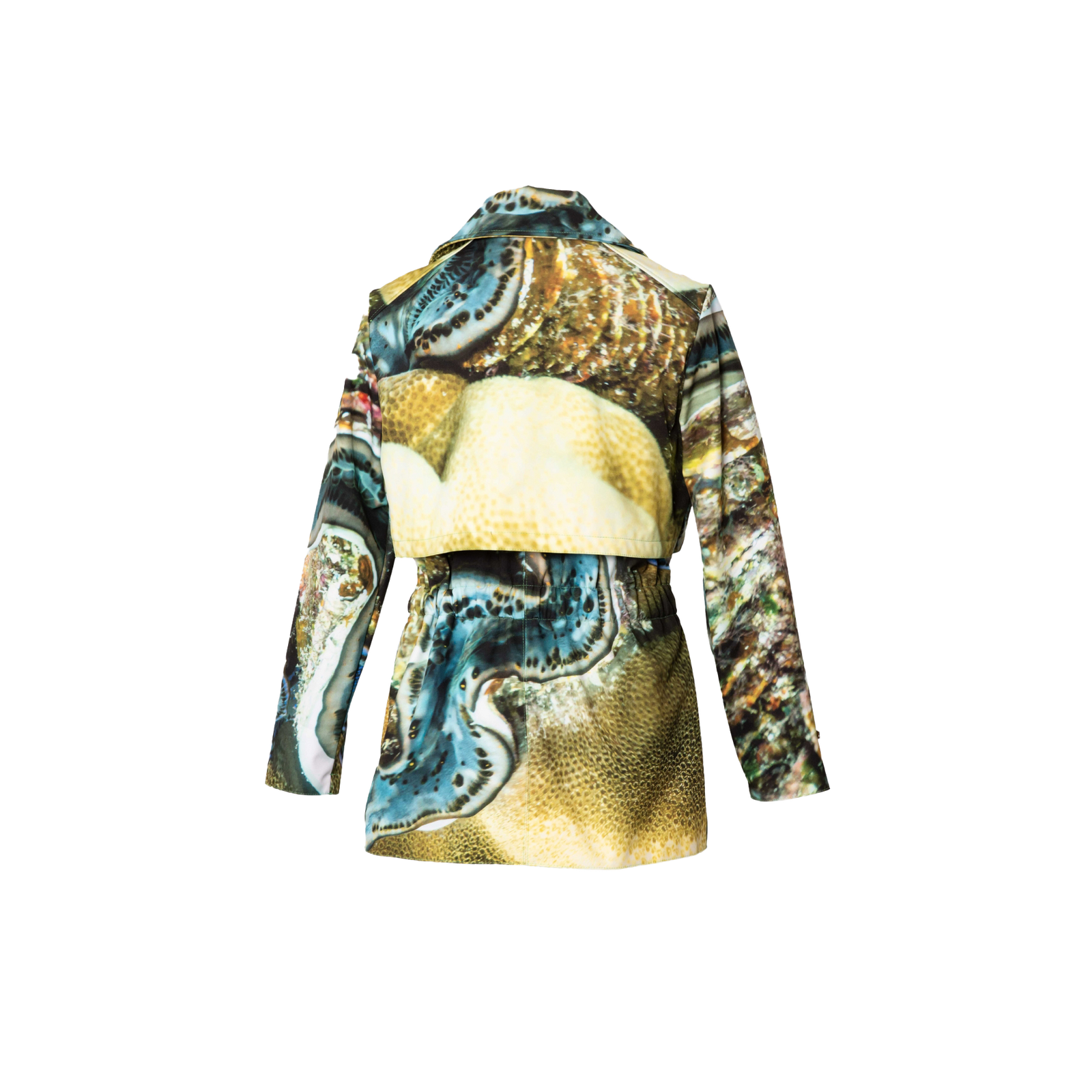 The unique print, inspired by the underwater world, was captured during a diving expedition – showcasing vivid, luminous colours that bring life and character to every outfit. The short women’s coat with an ocean-inspired design is the perfect choice for those who value elegance, contemporary design, and original colour combinations drawn from nature.