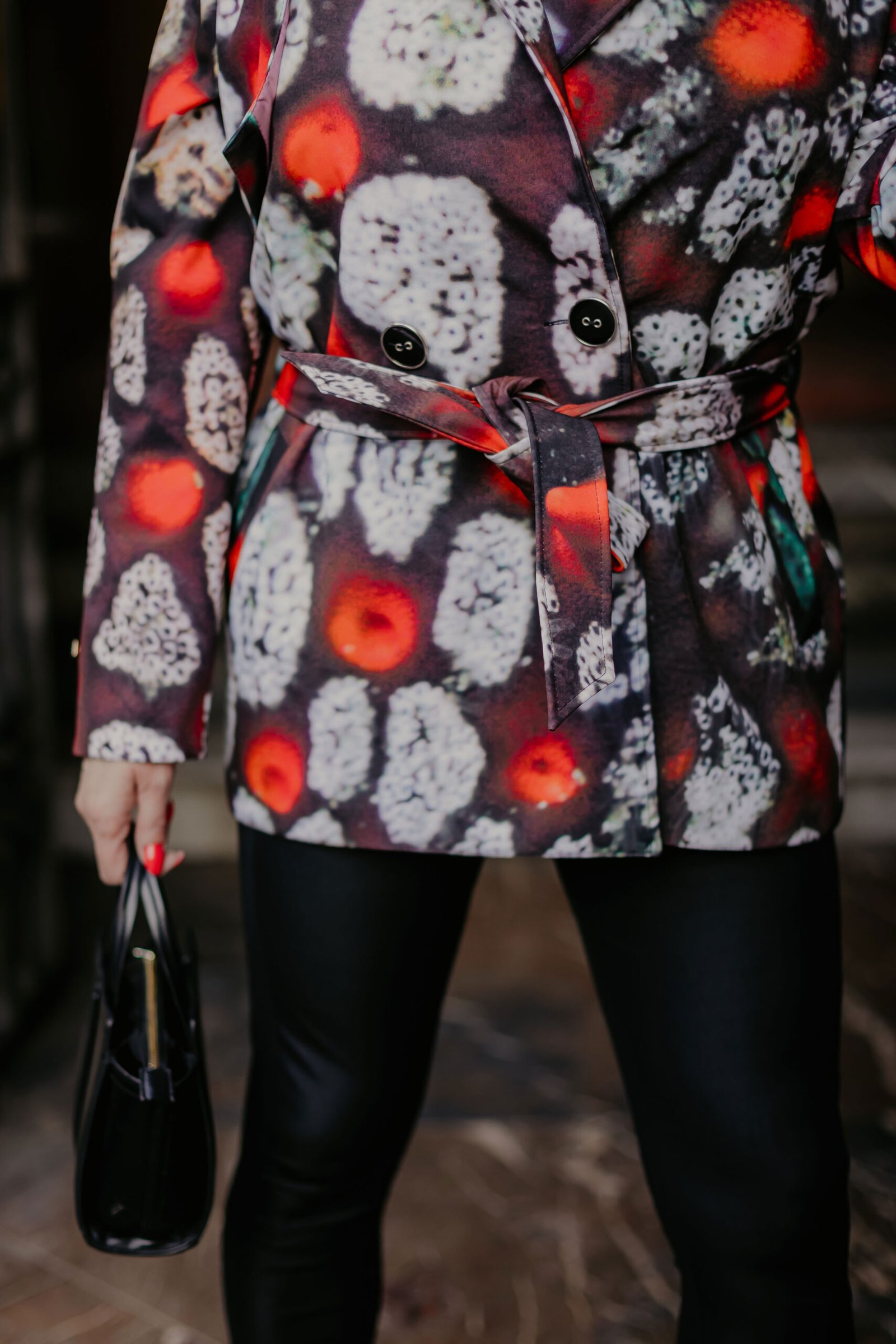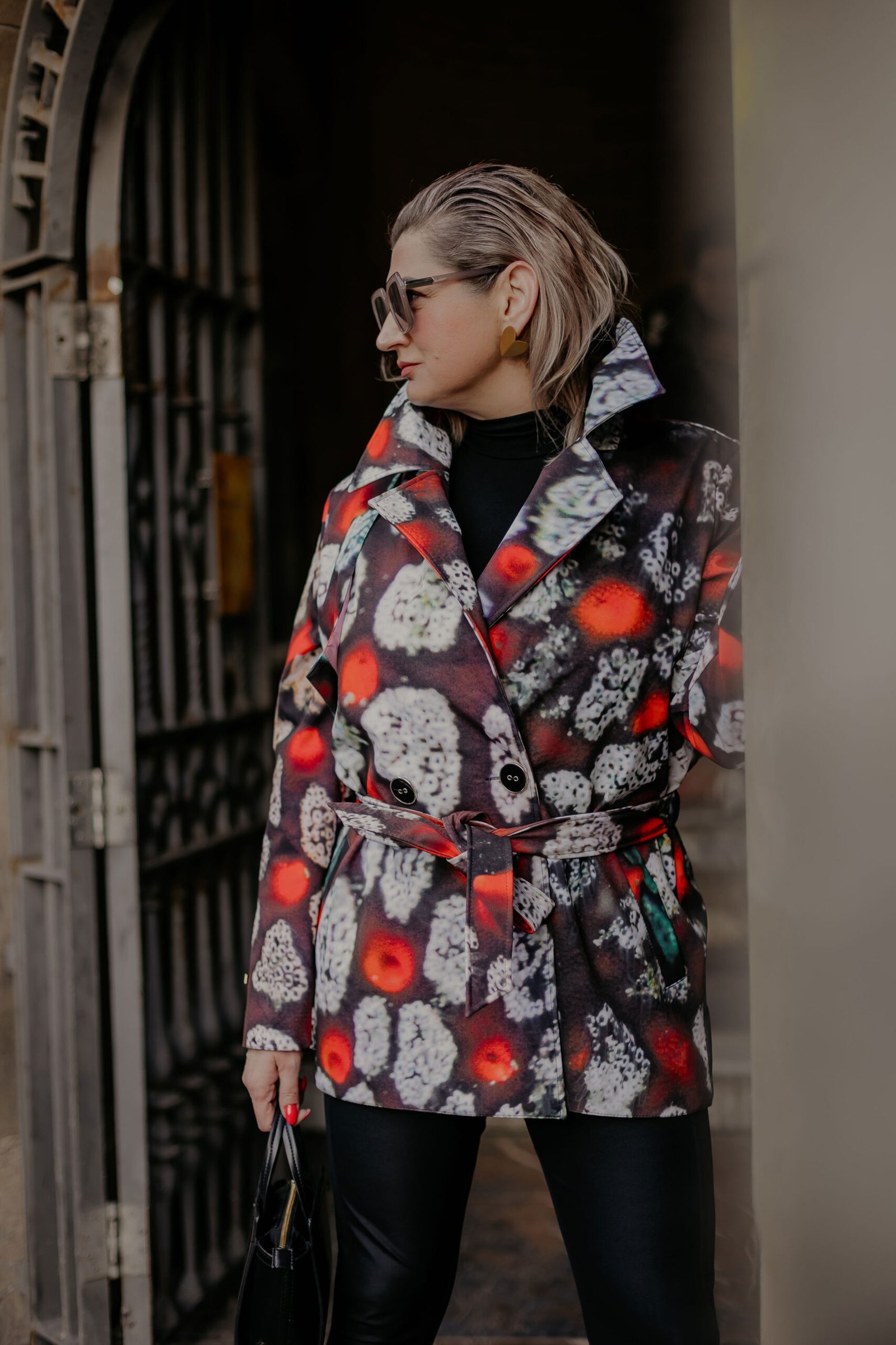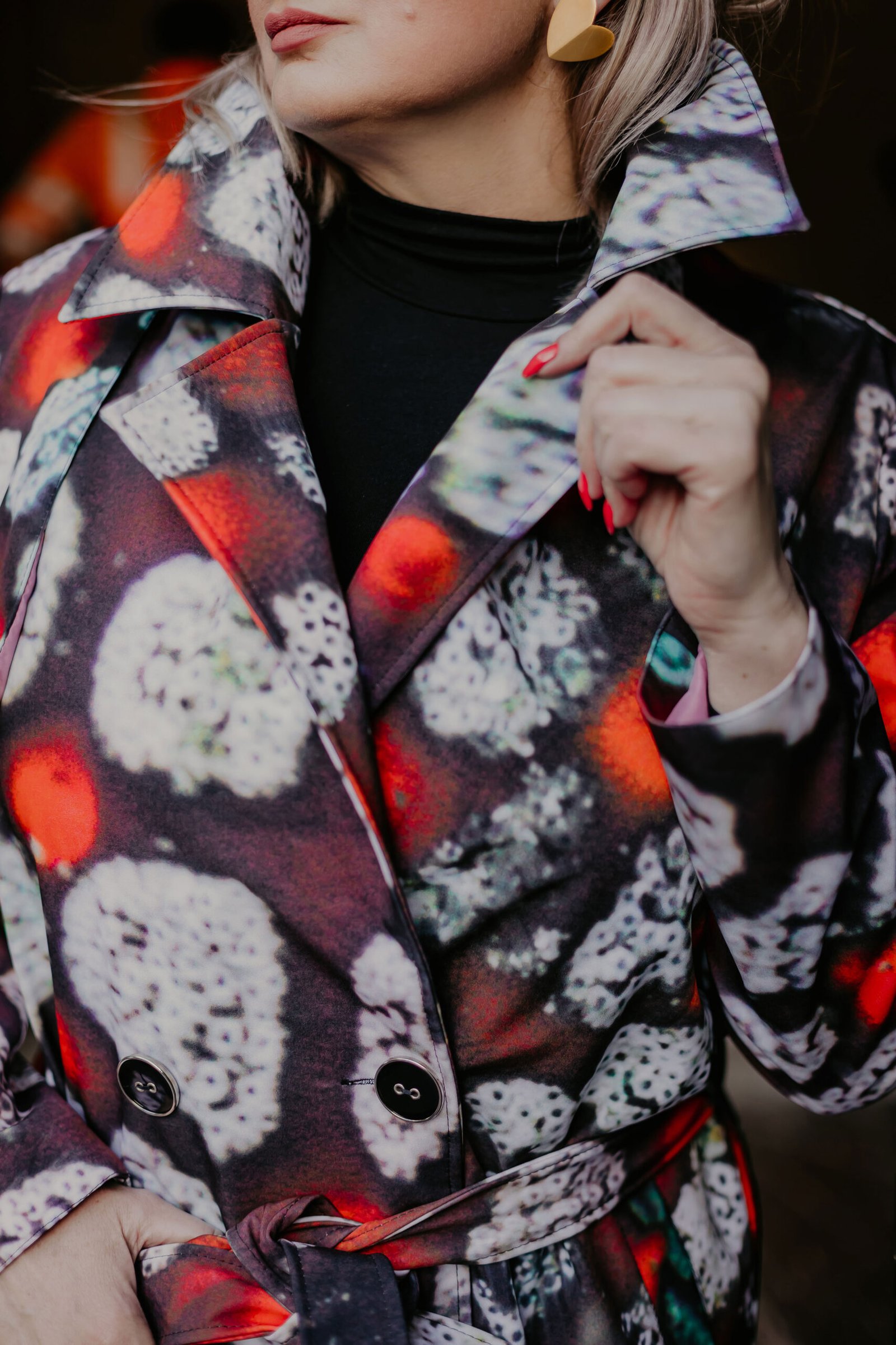 Discover elegance and functionality in perfect harmony. This short women’s coat, tied at the waist, gracefully highlights the silhouette while ensuring comfort and style throughout the day. Made from high-quality waterproof fabric, it’s ideal for cooler days and fresh spring mornings, seamlessly combining practicality with refined design.The captivating colour palette is inspired by the underwater world of Ecuador – deep, vibrant red tones intertwined with delicate natural accents.