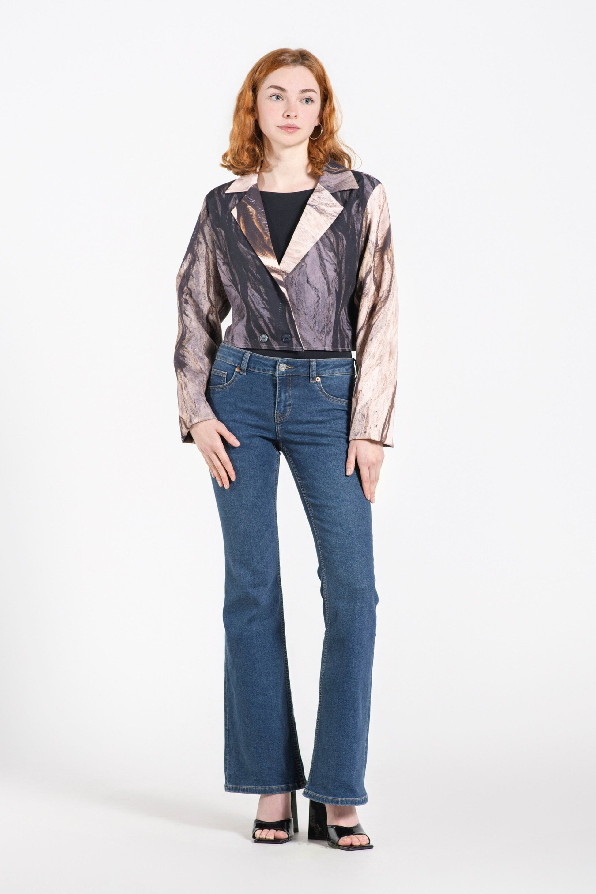 Indulge in understated sophistication with our impeccably tailored mid-cropped blazer, designed to fit true to size. Featuring elegantly padded shoulders and a luxuriously smooth inner lining, this blazer epitomizes both comfort and style. Secured with two sleek black buttons, its minimalist charm exudes effortless chic, making it the perfect addition to your wardrobe for any occasion.