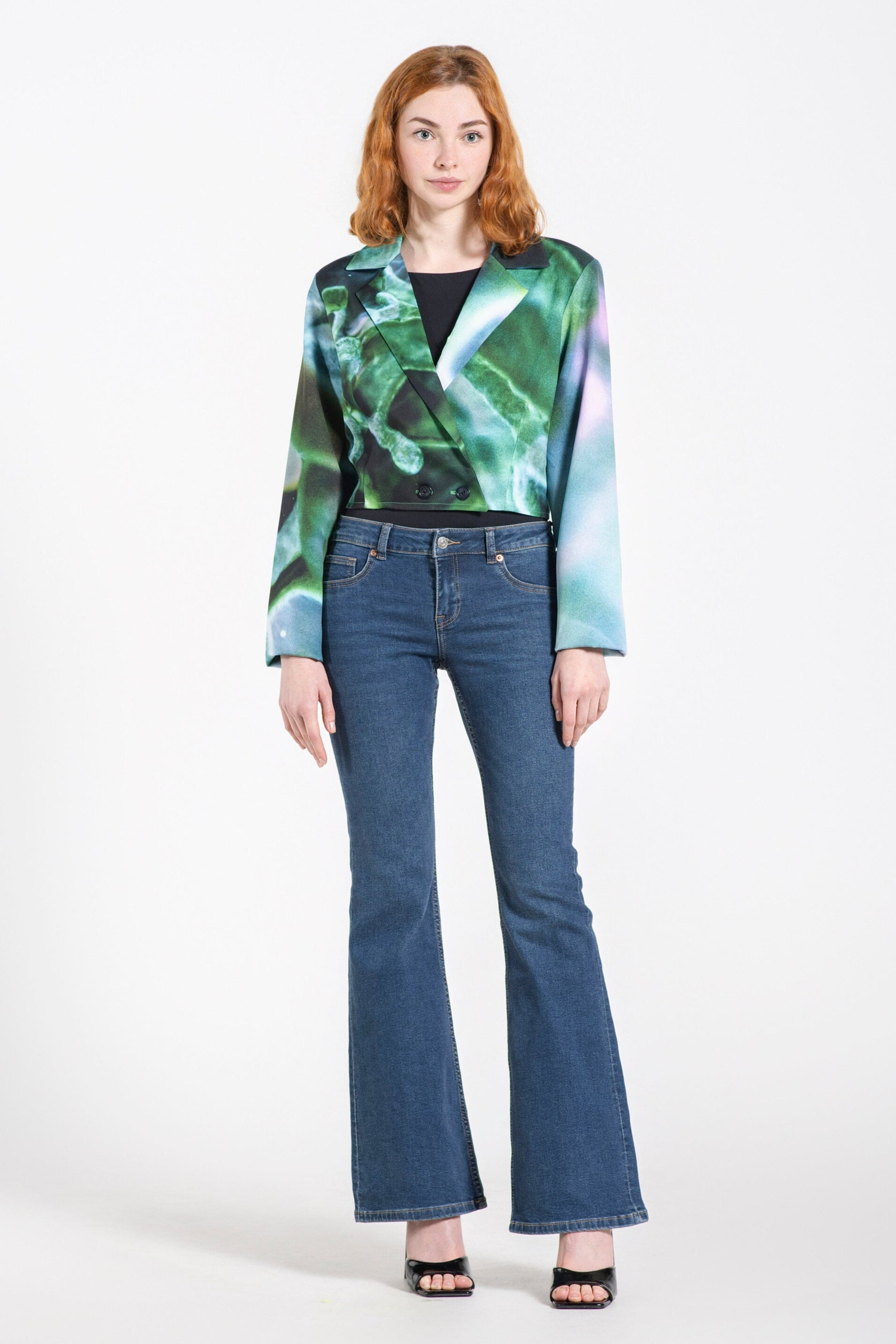 Pastel Blue and Green Cropped Blazer