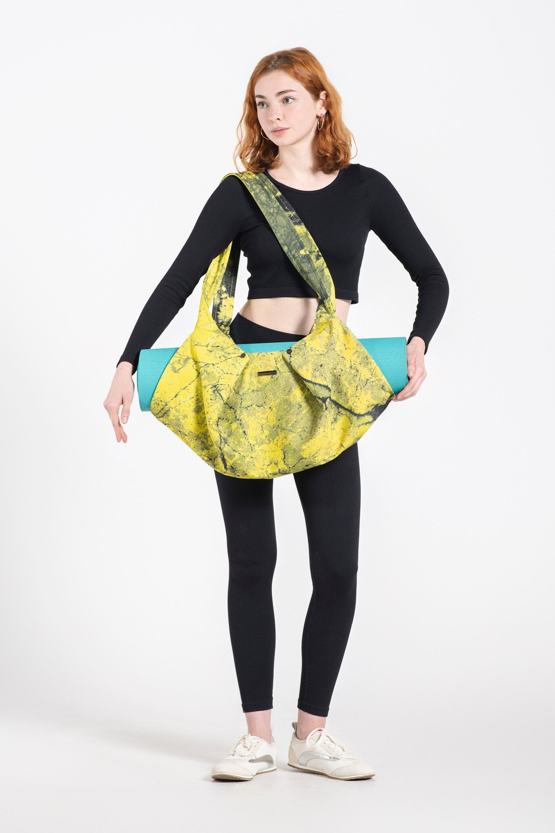 Shoulder Strap Yellow Algae Yoga Bag with Zipper